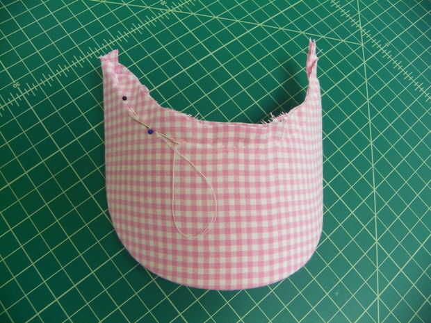 Sew cuenta piezas derecho lados juntos. PIN. Coser todo el borde delantero. piquetes en las curvas. Gire a la derecha eout sid. Coloque el plástico interior bill y perno cerrado. Puntada de la mano, incorporados en proyecto de ley de la tapa de plástico.
