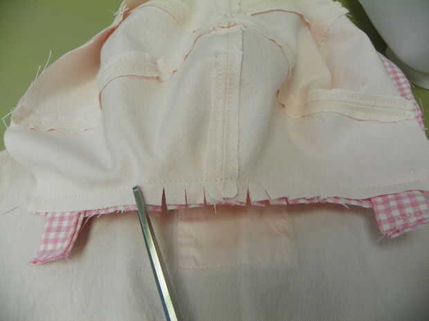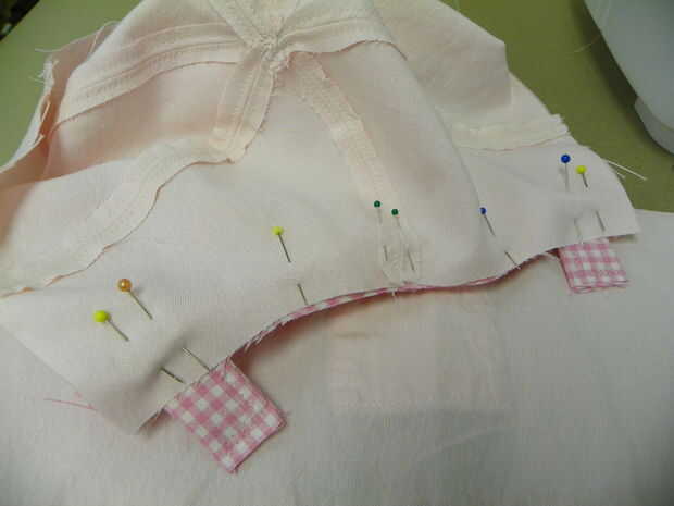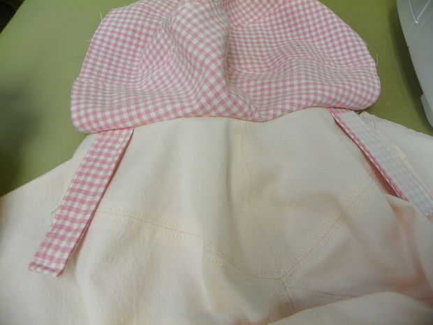 Lugar forro sobre la tapa, derecho contra derecho. Pin el velcro tiras, 1/2" desde el borde inferior. Coser alrededor de la curva trasera solamente. Clip de curvas y girar a la derecha hacia fuera. Colocar el forro dentro de la tapa. Puntada alrededor de la curva posterior.