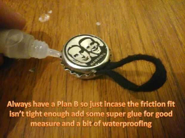 Ahora esto no podría mantener en su lugar si usted ha hecho la tapa interior demasiado pequeña por lo que aquí es donde vienen las maravillas de pegamento, usar con moderación y a sólo 3 puntos uniformemente distribuidos en las tapas los huecos, podría ir todo el camino alrededor para impermeabilización pero podría ser más difícil de abrir sólo que una fina capa debe hacerlo.