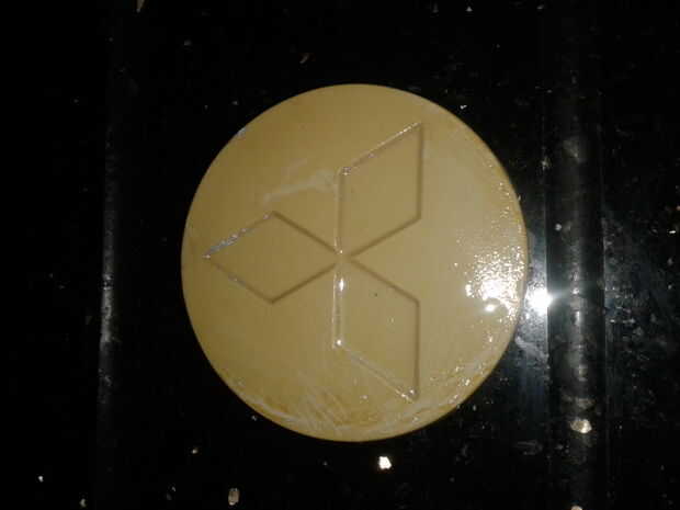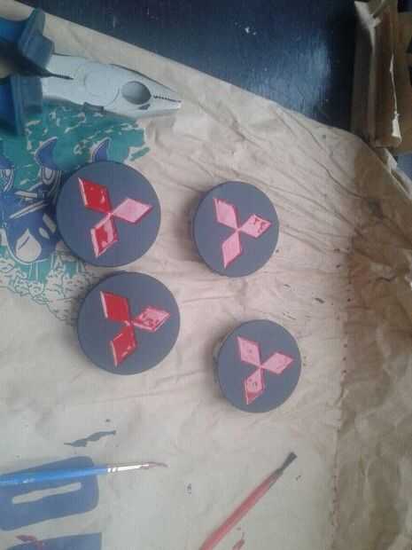 Después de exprimir hacia fuera cuatro, quité el raído pedacitos de pintura original con un poco de lijado ligero teniendo en cuenta el esquema de color. Decidir sobre rojo tradicional tres diamantes de Mitsubishi y un fondo negro.