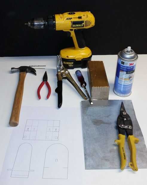 Algunas láminas de metal: medidor de luz, esto se hizo con algunos techo intermitente material tenía que poner alrededor, probablemente podría ser aluminio así. Una hoja de 6 "x 8" probablemente debe ser grande bastante (más si va a desordenar)