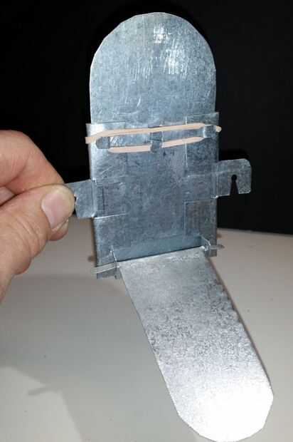 Montar las piezas, tienes que doblar las pestañas sobre el marco y la palanca para obtener los pernos por los orificios.