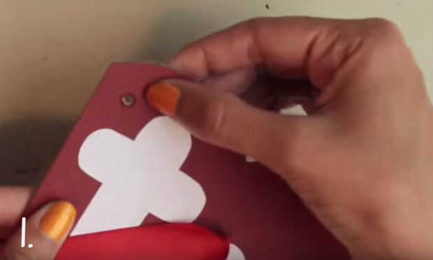 1. hacer un agujero en la esquina superior izquierda de la etiqueta.