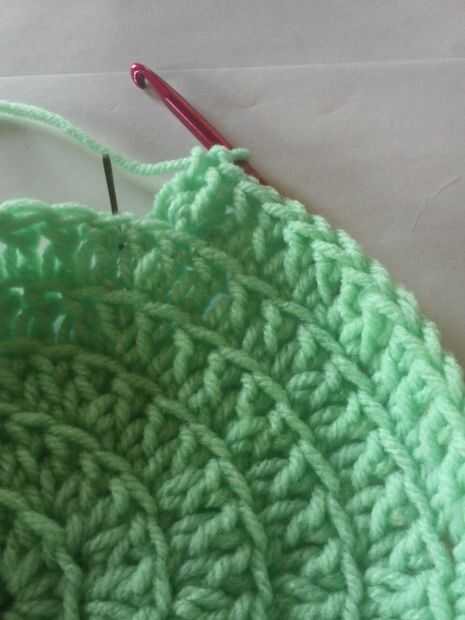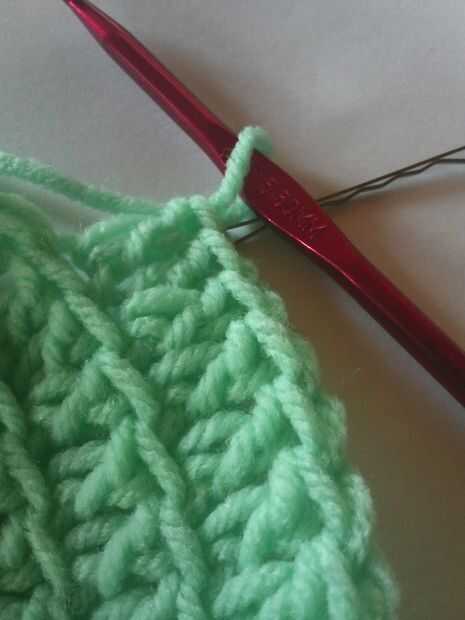 Quinta fila: Dc una vez en cada uno de lo siguientes cuatro puntos, dos dc en la siguiente, un dc en el dc en los próximos siguientes cuatro, dos, etc..