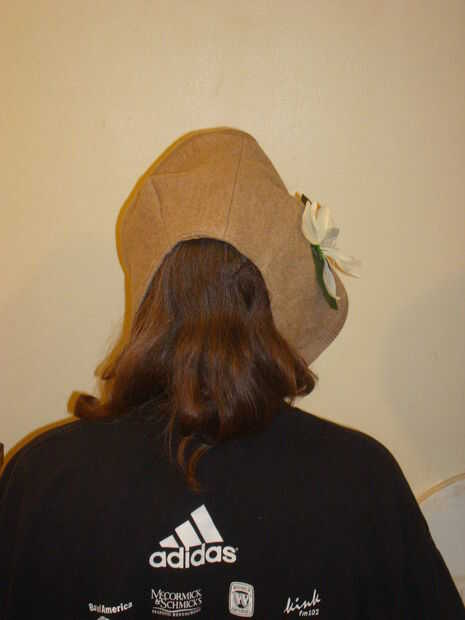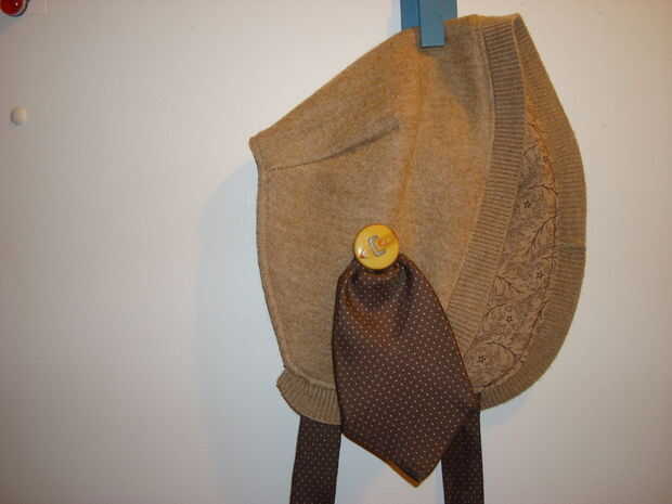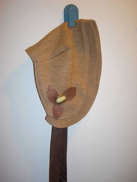 sombrero de esta mujer está hecha de una falda de lana. Es muy lento para hacer pero el resultado final es muy agradable. Me costo casi nada porque encontré la falda en mi tienda local por un dólar. Asegúrese de que tienes suficiente hilo, opté por u