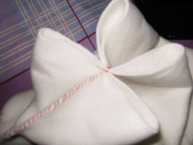 un lazo, luego doblar los dos lados igual y bucle otra vez y final.