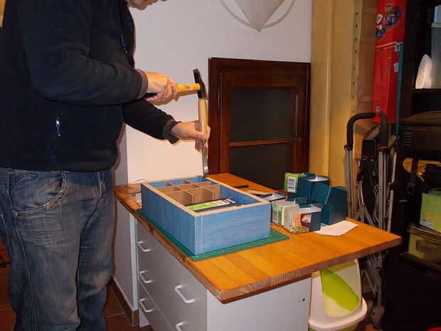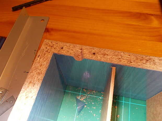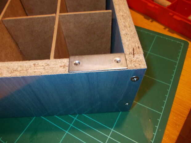 Con el formón realicé unas muescas y encima de estas, coloqué unas pletinas metálicas sujetas con tornillos para poder colgar la cajonera en caso de colección-lo.