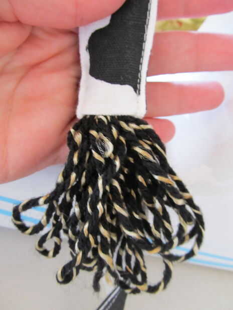 5. recoger un paquete de hilado cosas algún hilo en uno de los abiertos los extremos de la tira larga y coser cerró. (haciendo una cola)
