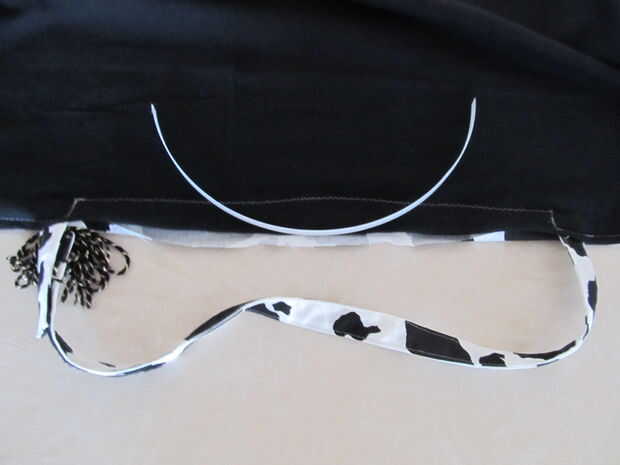 13. deslizar en sus 18" deshuesado. Debe encajar cómodamente de costura a costura. Desea que la curva natural de deshuesar a curva hacia el lado negro de la cubierta.