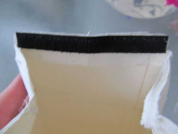 En la parte superior, línea de los labios de la caja de cartón con velcro con pegamento caliente y...