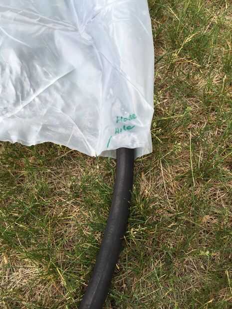 Antes de planchar, marca un espacio en el plástico de la manguera será puesta. No planchar esta sección.