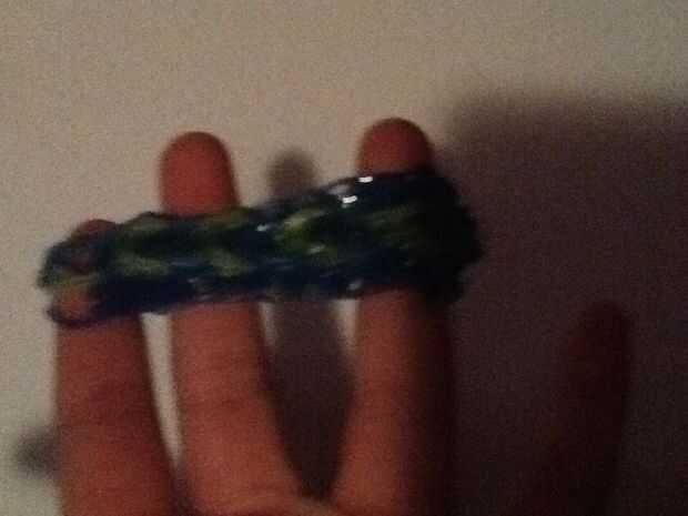 primero necesitas:BandasA - cantidad 28B - cantidad 12C - cantidad 12Necesitas la flecha del telar mirando hacia fuera.Paso 1: Colocación de bandas Coloque su primera una banda como se muestra en el cuadro 1. La segunda A la banda como se muestra en