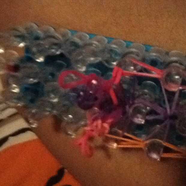 primero necesitas:BandasA - cantidad 28B - cantidad 12C - cantidad 12Necesitas la flecha del telar mirando hacia fuera.Paso 1: Colocación de bandas Coloque su primera una banda como se muestra en el cuadro 1. La segunda A la banda como se muestra en