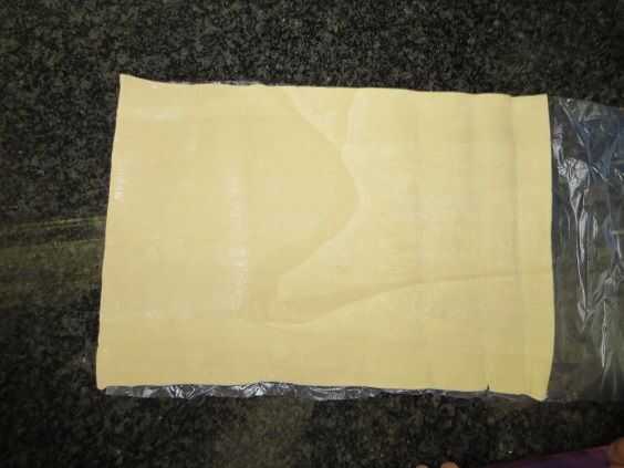 Poner el papel para hornear en la bandeja para hornear y estirar la masa.