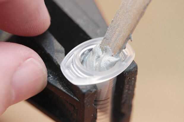 No necesita más que un poco de soldadura pegar en su jeringa - empuje el émbolo hasta que todo el aire se ha ido y los picos de goma a través de la cerradura del luer. Añadir su aguja dispensadora, y usted está listo para ir!