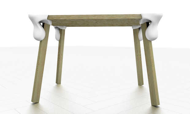 He diseñado una pieza de esquina de mesa que fácilmente usted mismo puede imprimir en cualquier color o material que te gusta. Hacer esto 4 veces, 2 izquierdos y 2 derechos. Para la mesa necesita un panel de madera de 18 mm. de espesor por el tamaño que prefiera. Las piernas deben ser 22 X 28 y les hice 380 mm de largo pero puede hacer tuyo como te gusta. Usted puede atornillar todo junto con 4 4, 0 x 40 y 4 4, 0 x 20 tornillos en los agujeros predestinados pero no del realmente necesario.