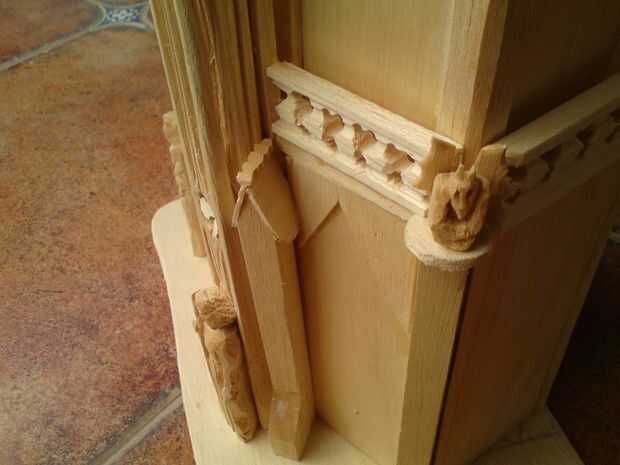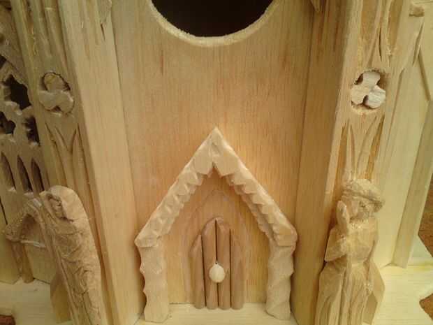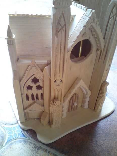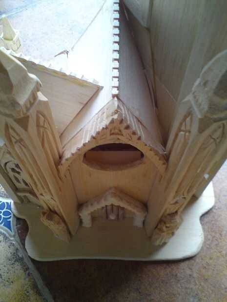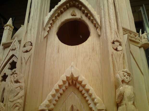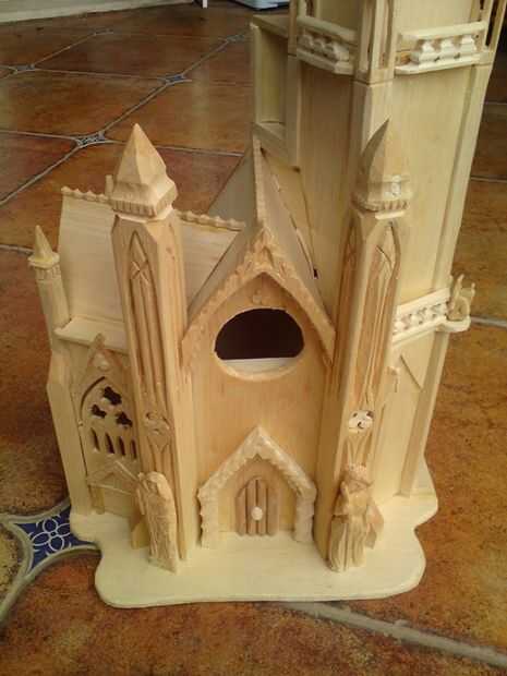 Comedero para pájaros gótico de madera balsa! Los elementos como agujas, arbotantes, costillas, arcos lanceta etc. todo seguramente son los puntos de inspiración de la arquitectura gótica aquí. Pero también he añadido mi punto de vista ecléctico demasiado. Sólo usé el cuchillo a lo largo de todo el proceso en mi tiempo libre. Espero que les guste ;)