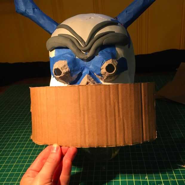 - Crear cuernos y fije al cráneo. Había enrollado y pegado cartulina para obtener los cuernos en la forma correcta.