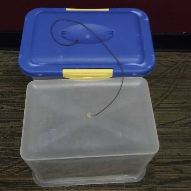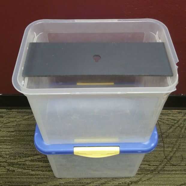 • Retire la manija de la tapa del compartimiento de la parte inferior / perforar un agujero más grande que el primero de ellos permite a que el líquido fluya desde el recipiente superior al inferior.