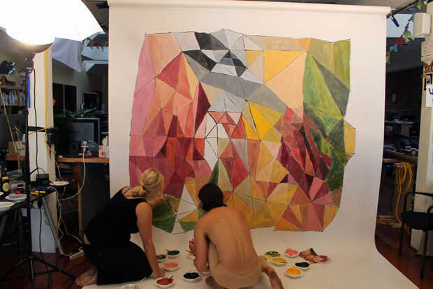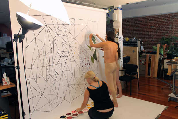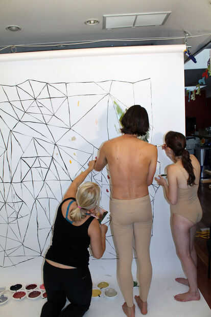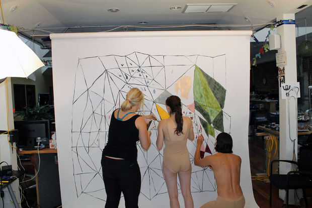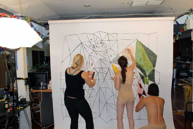 • Utilizando un proyector, proyectar un marco todavía desde el vídeo de la música en un pedazo de papel mural.  Nuestro papel era aproximadamente 8 pies x 8 pies.