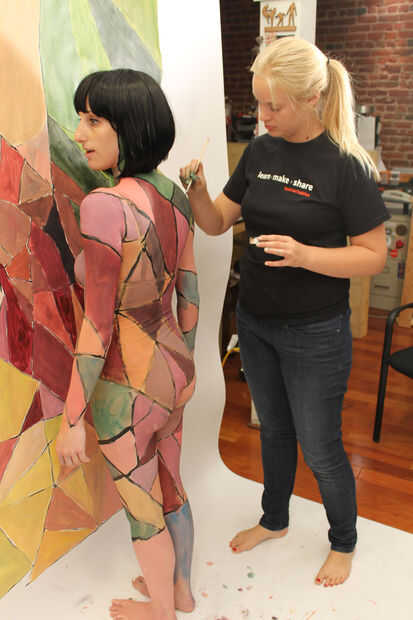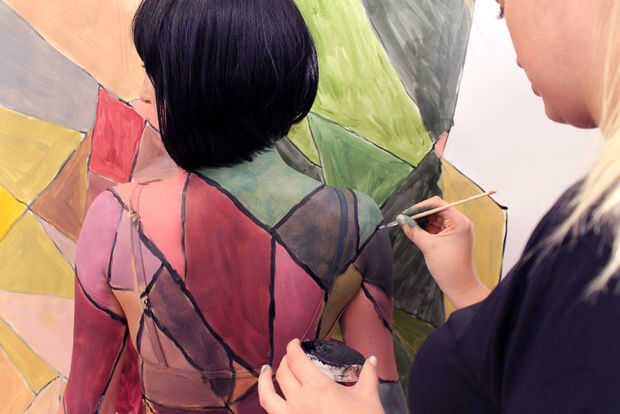 Pintura de la ropa - utilizamos la pintura del cuerpo para mantener la coherencia de los colores. Puesto que la ropa es más absorbente que la piel mantenga la pintura más acuosa y luego la pintura para el cuerpo.