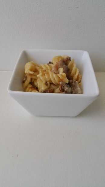 A plato de pasta delicioso, rápido y fácil.  Una salsa de tomate y queso crema con tocino, champiñones y penne - una combinación clásica y un plato de comodidad encantadora.  Espero que lo disfruten! tiempo de preparación:20 minutostiempo de cocción:
