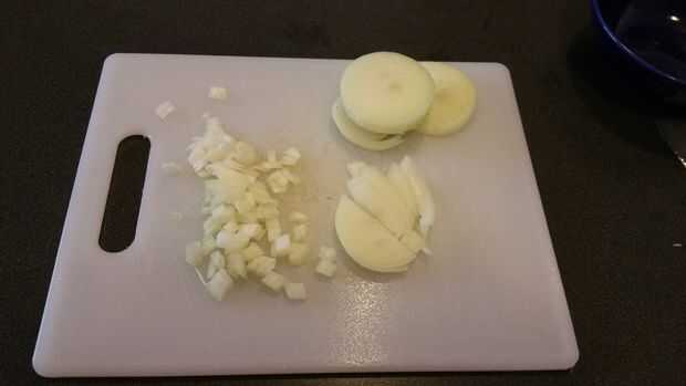 Preparar los ingredientes. Trocear la cebolla en trozos pequeños. Retire la cubierta de cera del queso Gouda por rebanar con un cuchillo. Descartar la cera roja. Rallar el queso Gouda con los agujeros más grandes de la Ralladora de queso.
