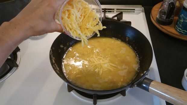 Añadir la leche y el queso rallado a la cacerola. Continuar la cocción sobre fuego medio, revolviendo frecuentemente, hasta que el queso se haya derretido. Reducir el calor a medio-bajo y cocine 6 minutos. Retirar del fuego; se espesa la salsa.