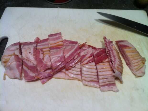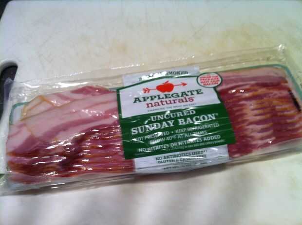 La receta pide un paquete de mitad de tocino. Así que a comprar media libra de tocino bien. Sin nitratos.