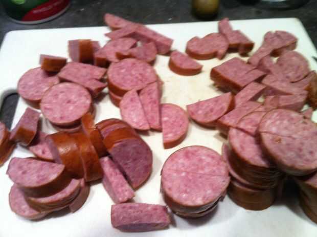 Vamos a utilizar el anillo entero. Cortarla por la mitad, rebanada las mitades por la mitad y luego cortarlas en mordedura de secciones de tamaño.