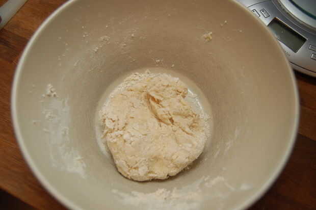 3. una vez que se mezcla con el huevo añadir el agua un poco hasta que la harina se mezcla y tiene una masa firme. Tenga cuidado de no agregar demasiada agua, pero si no, añadir un poco de harina para ajustarla.