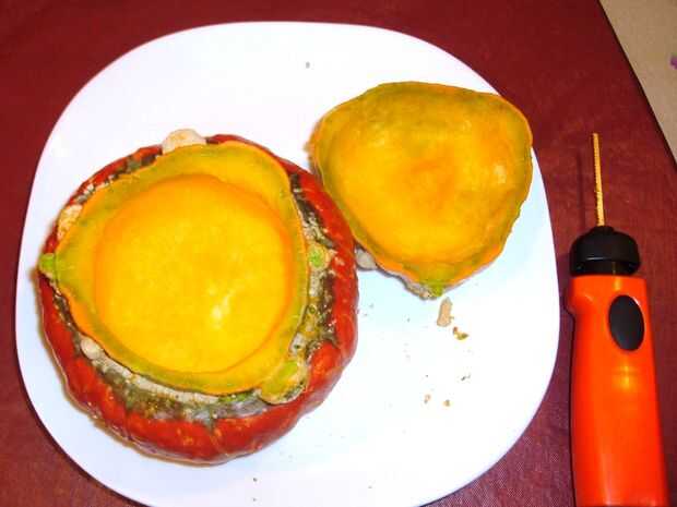 Cortar la parte superior de la calabaza apagado, ahorro de la tapa.
