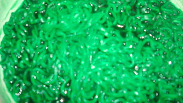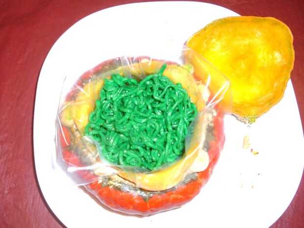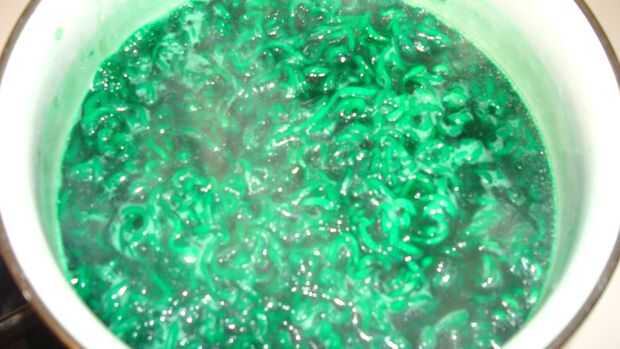Hacer el Ramen los tallarines según las indicaciones, pero añadir el colorante al principio antes de agregar el Ramen.