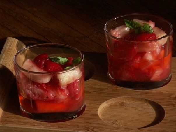 5) distribuya la mezcla en copas de cristal y decorar con hojas de albahaca.