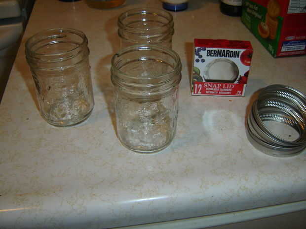 Se necesitan 6-250 mL tarros con tapas de cierre y tornillo de bandas. Si usted está comprando frascos nuevos debe vienen con las tapas de presión y las bandas con rosca. Si están reutilizando tarros Asegúrese de comprar nuevas tapas de complemento como estos no deben ser reutilizados.