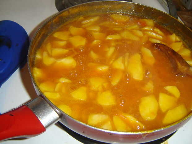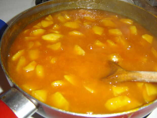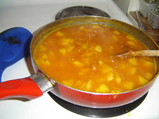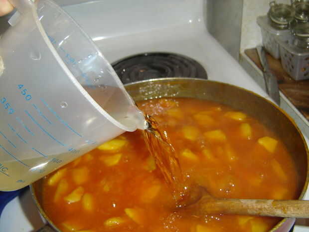 1. llevar fruto completo hervir revolviendo constantemente para evitar que se quemen. Hervir suavemente destapado durante unos 20-30 minutos, cuanto más tiempo hierva la mezcla de fruta cuanto más gruesa será las conservas.