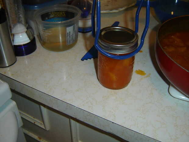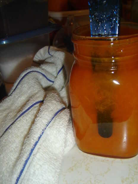 Nota: La receta debe hacer frascos de 6 250 mL, pero he encontrado que esto es todo depende de la madurez de los albaricoques. Este lote hace frascos de 3 250 mL y un frasco de 500 mL. Últimos años lote sólo hizo frascos de 4 250 mL.