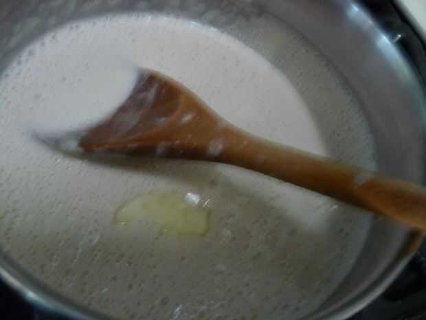Agregar ajo en polvo y la manteca. Reducir el fuego a bajo. Cocinar a fuego lento, revolviendo constantemente hasta que la salsa se reduzca a su consistencia preferida.