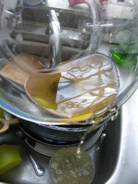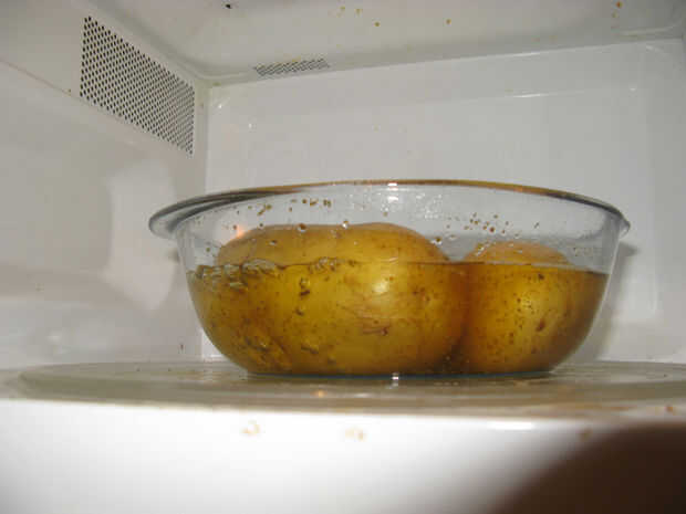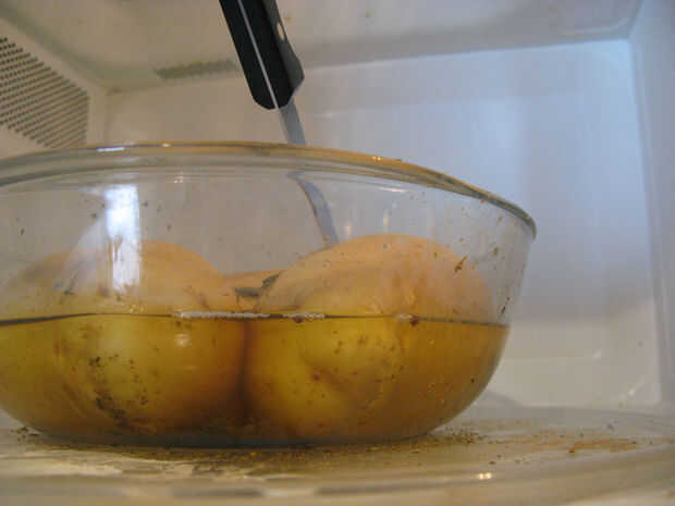 La mayoría de la información en este paso está en las imágenes. El cuarto es particularmente importante, ya que muestra cómo el cuchillo tiene que ver para juzgar si las patatas se hacen o no.
