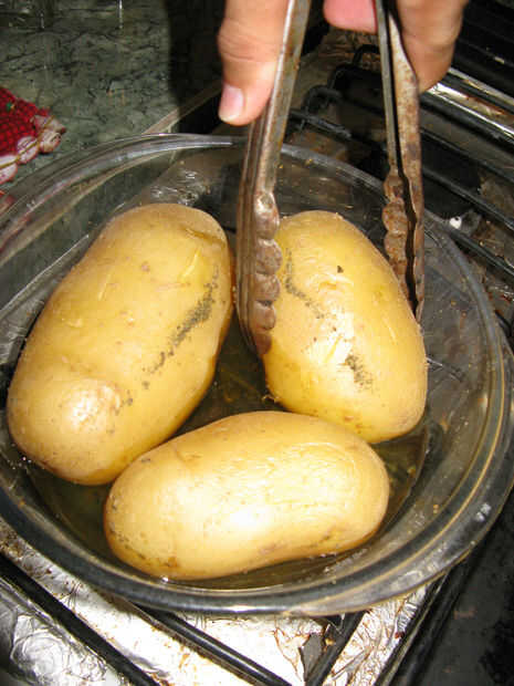 En los siguientes pasos, te detallo lo que hice con las tres patatas. Recuerde, los tres de ellos en diferentes etapas de cocción.
