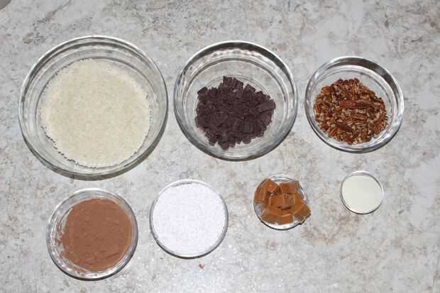 Empezar por combinar el arroz instantáneo, polvo de cacao, leche en polvo y azúcar en polvo en una bolsa de plástico. Luego de la capa los bombones, nueces y virutas de chocolate * en una bolsa aparte. En el siguiente paso, vamos a ver por qué es importante poner los bombones en la parte inferior! Si tienes espacio con tus bombones, nueces y chips de chocolate, cortadas los caramelos por la mitad, les polvo con un poco de maicena para evitar que se pegue y agregar con los otros ingredientes. De lo contrario, añadir los caramelos todo en el bolso con el arroz. Una vez que todo viene para arriba, añadir la bolsa de ingredientes con el arroz y esperar con anticipación dulce para comer en el camino!