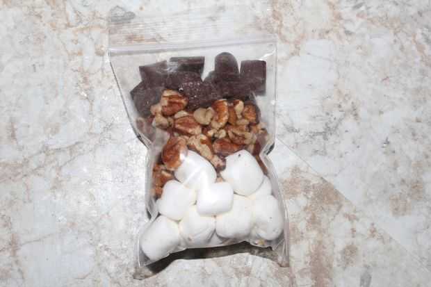 * Lecciones aprendidas de la ruta: Asegúrese de mezclar las nueces y los chips de chocolate. En un día caliente el chocolate empezar a fundirse juntos. Al mezclar el chocolate y las nueces hará más fácil de romper si ha pegado juntos!