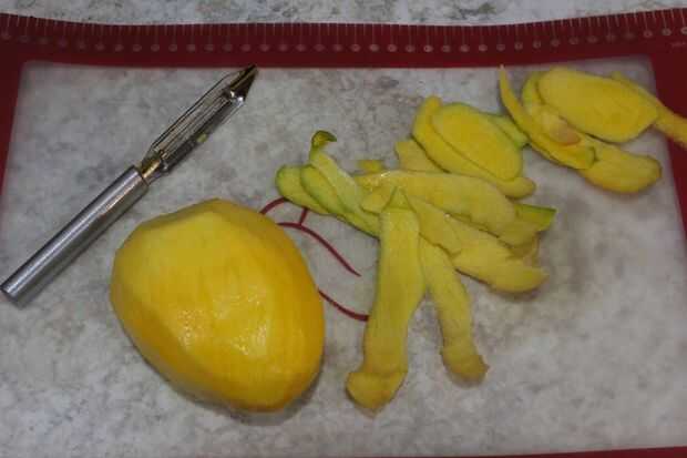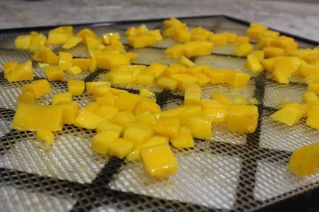 Empezar por preparar la fruta para la deshidratación. Después rebanar de las naranjas, recortar tanto la médula como puedas ya que esto tiene un sabor desagradable y una textura extraña cuando se reconstituyen. Mientras que usted no necesita conseguir cada poco de médula, tratar de que la mayor parte de él. A continuación, pelar el mango con un pelador de verduras, trocear la fruta y colocar en la bandeja del deshidratador. Terminar su pastel de Ángel en 1/2" de corte rodajas y colocarlos en una bandeja para deshidratar la fruta. Ejecutar el deshidratador a 135° F durante 10 horas o hasta que se puede romper abierto una rodaja de naranja y no encontrar cualquier humedad.
