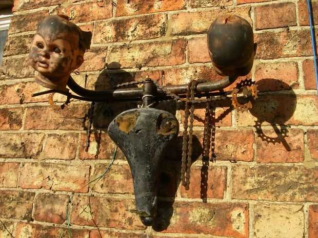En la primera fotografía se puede ver un objeto de arte, que ha sido colgar en mi muro de jardín durante unos años. como tal es digno de aproximadamente £30.000; Estoy pensando utilizarlo para mi bicicleta.