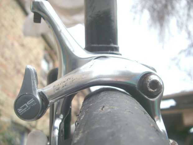 Sigo esperando mi hub frenos de Ebay pero mientras espero he probado el freno de doble pivote de RX100 en la parte delantera...