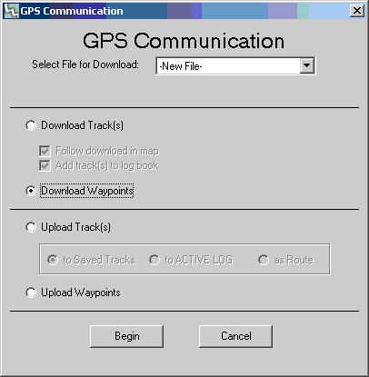 Utilizando el mismo software, descargar tus waypoints. Deberían subir en la parte inferior como un archivo separado y se muestran como cuadrados. Normalmente paso la preferencia a "símbolo" para que los nombres de waypoints no ocultar el mapa.