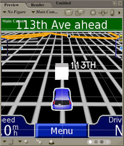 POSER: importar la imagen de referencia como fondo, donde aparecerá automáticamente. Seleccione la cámara principal y utilice el cuadro de diálogo de objeto de "punto de en..." para apuntar en la primitiva caja.