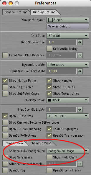 LIGHTWAVE: abrir el cuadro de diálogo de efectos: composición de escena para importar la imagen de referencia como fondo. a continuación, abra las opciones de visualización para seleccionar la imagen como un "fondo de vista cámara". cambiar la ventana principal a la "visión de la cámara" para ver el fondo.