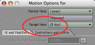 Seleccione la cámara. abrir el cuadro de diálogo de opciones de movimiento y cambiar el "destino" para el null. Esto evitará que la cámara apuntada a null no importa donde se mueve; Tenga en cuenta que ya no podrás girarlo manualmente.