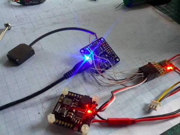Para ahorrar peso y para que todo cabe dentro de la cabina, opté por la soldadura de los cables de entrada RC y el GPS los cables directamente a la FC Naze32 (como en la imagen).